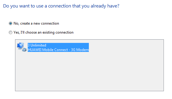 3. Lalu pilih No, create a new connection untuk membuat koneksi baru.
