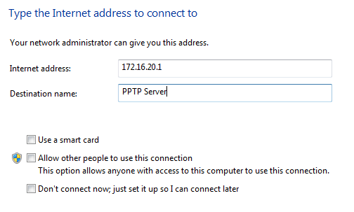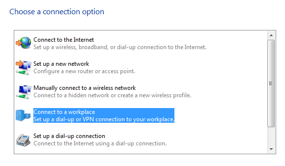 Lalu tinggal hubungkan dengan clientya, kali ini saya menggunakan windows 7. Perlu diingatkan sebelum masuk ke koneksi VPN perlu diberi IP Address pada sisi client dengan network yang sama dengan server. Agar koneksi VPN dapat terhubung.