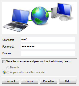 10. Lalu masukan User name dan Password. Lalu klik connect apabila terhubung maka koneksi VPN PPTP telah berhasil.